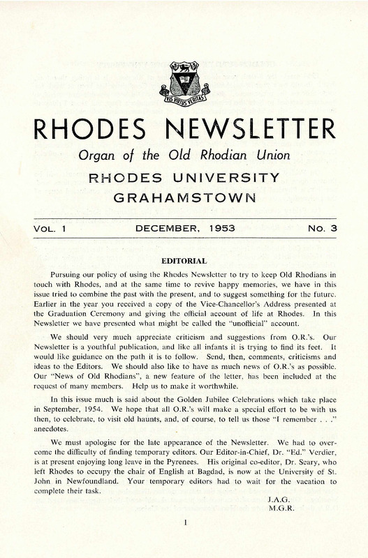 Rhodes University, Grahamstown, South Africa, “Rhodes Newsletter 1953: Vol. 1, No. 3”, Rhodes University History Archive, accessed 29 December 2025, https://digitalarchives.ru.ac.za/s/ruha/item/7320