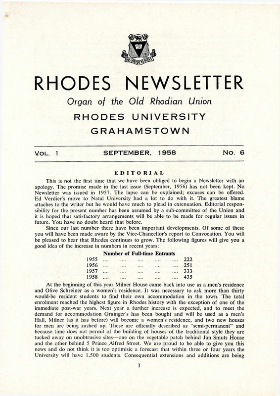 Rhodes University, Grahamstown, South Africa, “Rhodes Newsletter: Vol. 1, No. 6”, Rhodes University History Archive, accessed 29 December 2025, https://digitalarchives.ru.ac.za/s/ruha/item/7324