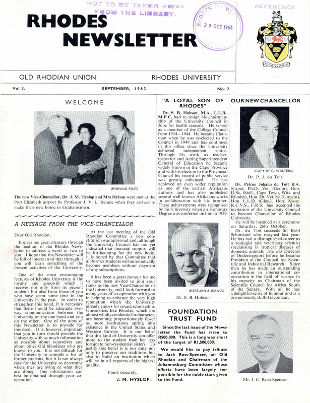 Rhodes University, Grahamstown, South Africa, “Rhodes Newsletter: Vol. 3, No. 2”, Rhodes University History Archive, accessed 29 December 2025, https://digitalarchives.ru.ac.za/s/ruha/item/7332