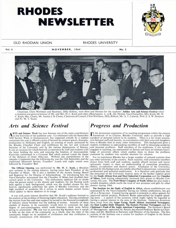 Rhodes University, Grahamstown, South Africa, “Rhodes Newsletter: Vol. 4, No. 3”, Rhodes University History Archive, accessed 29 December 2025, https://digitalarchives.ru.ac.za/s/ruha/item/7338