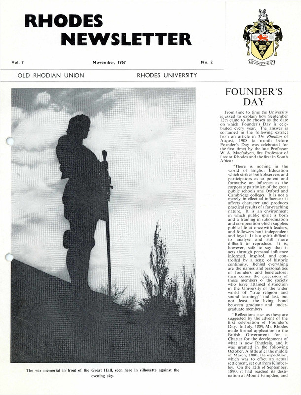 Rhodes University, Grahamstown, South Africa, “Rhodes Newsletter: Vol. 7, No. 2”, Rhodes University History Archive, accessed 29 December 2025, https://digitalarchives.ru.ac.za/s/ruha/item/7342