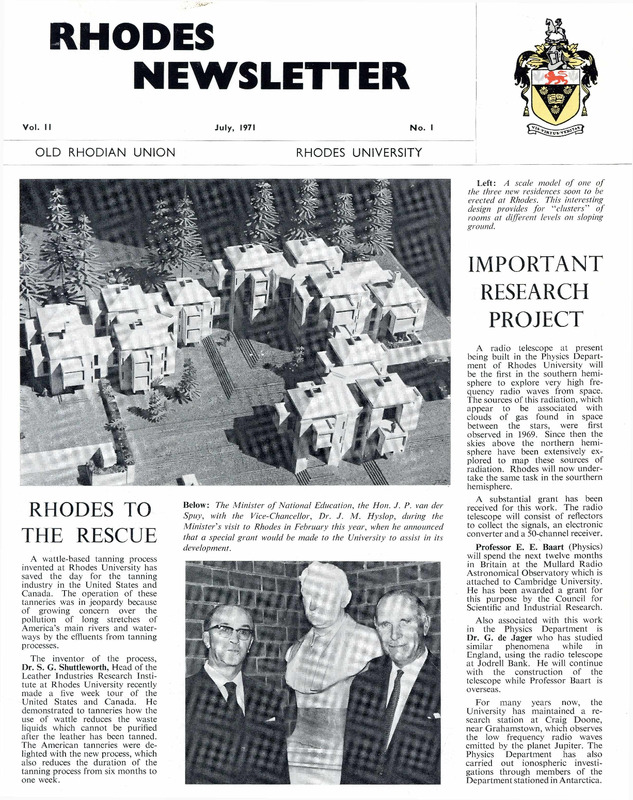 Rhodes University, Grahamstown, South Africa, “Rhodes Newsletter: Vol. 11, No. 1”, Rhodes University History Archive, accessed 29 December 2025, https://digitalarchives.ru.ac.za/s/ruha/item/7356