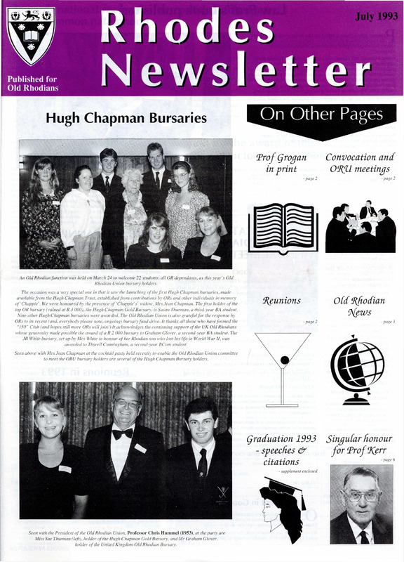 - The Old Rhodian Union Newsletter keeping in contact with Alumni and informing them of the latest news from Rhodes University. The publication ran from 1951 to 2001, and was subsequenlty replaced with an electronic newsletter distributed via electronic mail.