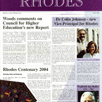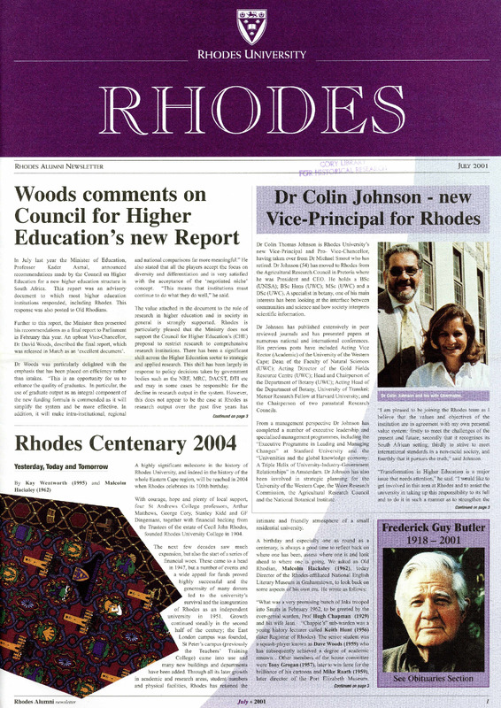 Rhodes University, Grahamstown, South Africa, “Rhodes Newsletter 2001”, Rhodes University History Archive, accessed 29 December 2025, https://digitalarchives.ru.ac.za/s/ruha/item/7452