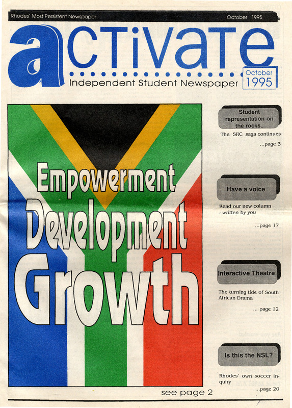 Rhodes University, Grahamstown, South Africa, “Activate: 1996 - October”, Rhodes University History Archive, accessed 29 December 2025, https://digitalarchives.ru.ac.za/s/ruha/item/7466