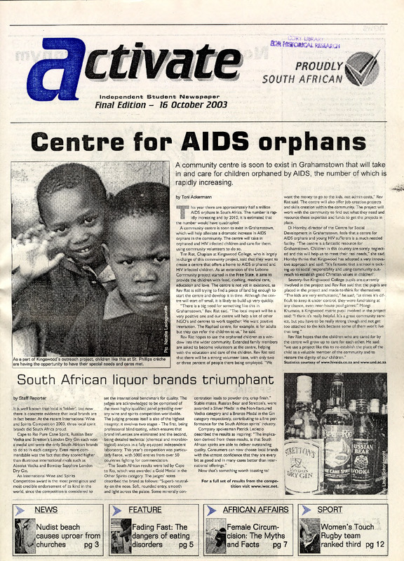 Rhodes University, Grahamstown, South Africa, “Activate: 2003 - October”, Rhodes University History Archive, accessed 29 December 2025, https://digitalarchives.ru.ac.za/s/ruha/item/7562