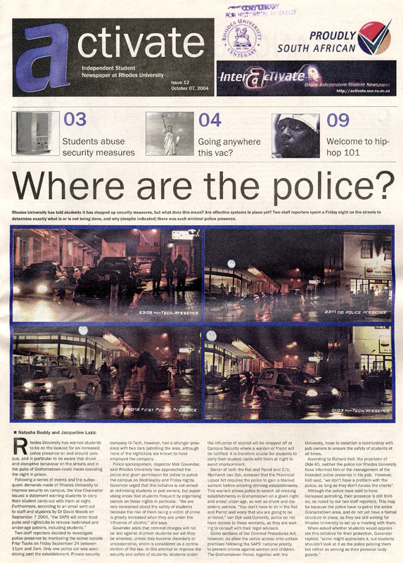 Rhodes University, Grahamstown, South Africa, “Activate: 2004 - October”, Rhodes University History Archive, accessed 29 December 2025, https://digitalarchives.ru.ac.za/s/ruha/item/7570