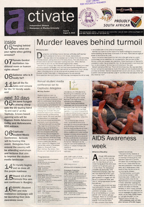 Rhodes University, Grahamstown, South Africa, “Activate: 2004 - August”, Rhodes University History Archive, accessed 29 December 2025, https://digitalarchives.ru.ac.za/s/ruha/item/7576