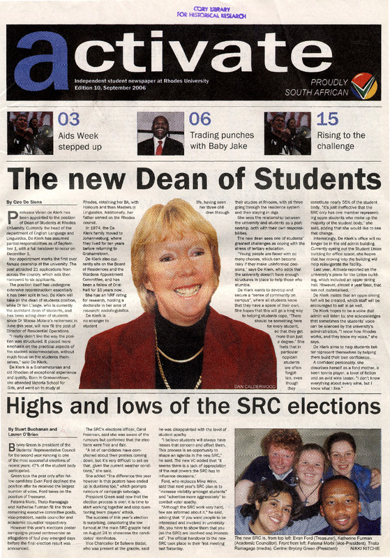 Rhodes University, Grahamstown, South Africa, “Activate: 2006 - September”, Rhodes University History Archive, accessed 29 December 2025, https://digitalarchives.ru.ac.za/s/ruha/item/7600