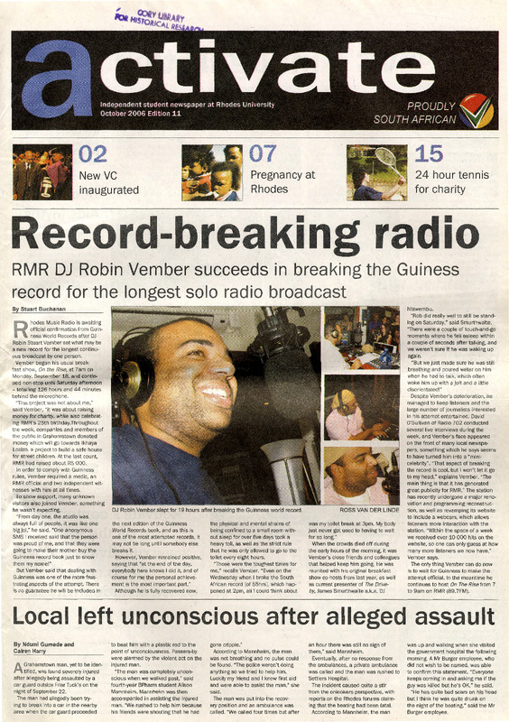 Rhodes University, Grahamstown, South Africa, “Activate: 2006 - October”, Rhodes University History Archive, accessed 29 December 2025, https://digitalarchives.ru.ac.za/s/ruha/item/7602