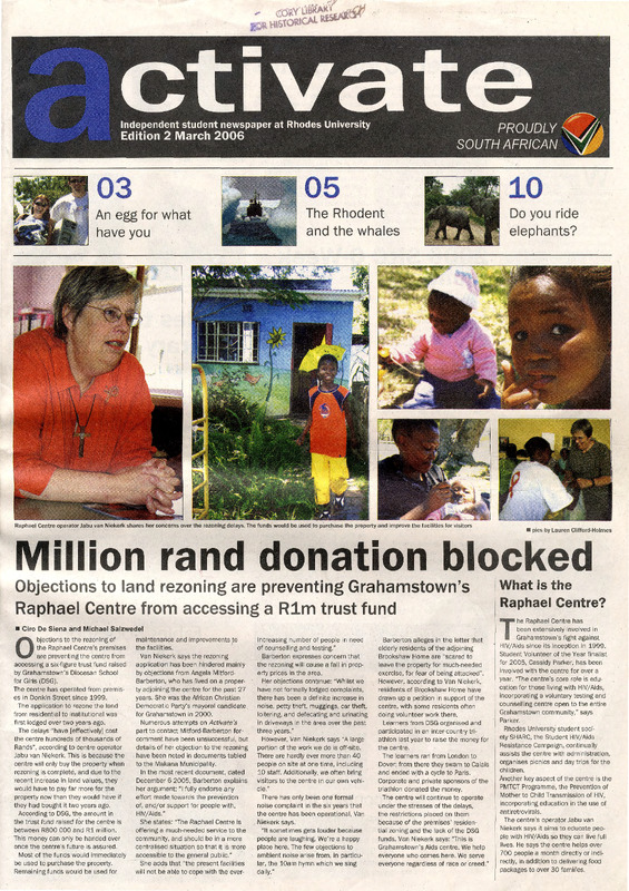 Rhodes University, Grahamstown, South Africa, “Activate: 2006 - March”, Rhodes University History Archive, accessed 29 December 2025, https://digitalarchives.ru.ac.za/s/ruha/item/7606