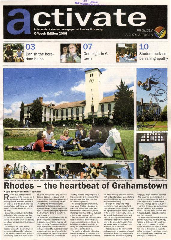- Activate is the Independent Student Newspaper of Rhodes University. Located in Grahamstown, Activate was established in 1947 as Rhodeo, and during apartheid became an active part of the struggle for freedom of expression as part of the now defunct South African Student Press Union. Currently Activate is committed to informing Rhodes University students, staff and community members about relevant issues, mainly on campus. These issues range from hard news to more creative journalism. While Activate acts as a news source, one of its main objectives it to be accessible as a training ground for student journalists. The newspaper is run entirely by the students and is published twice a term. Activate is a free newspaper which receives an annual grant from the Rhodes University Student Representative Council, however, majority of its revenue is generated through advertising.