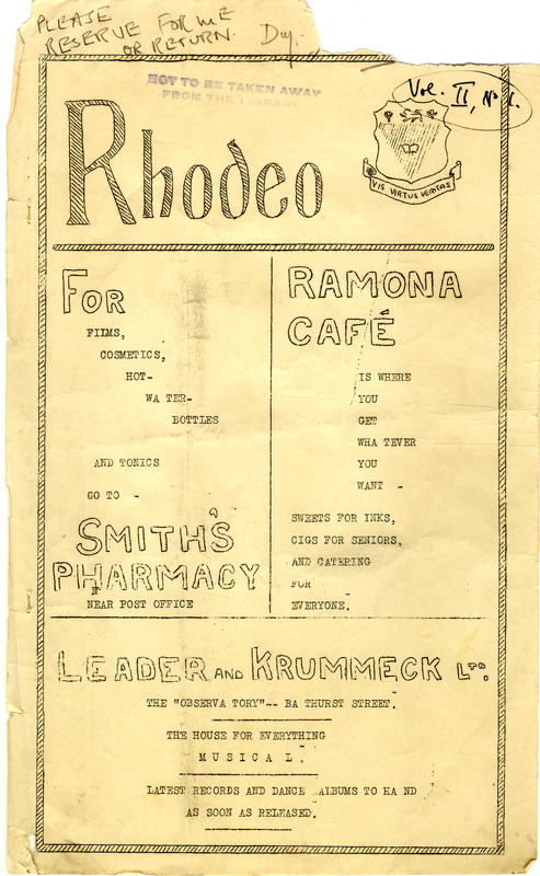 Rhodes University, Grahamstown, South Africa, “Rhodeo, Vol. 1, No. 1”, Rhodes University History Archive, accessed 30 December 2025, https://digitalarchives.ru.ac.za/s/ruha/item/7622