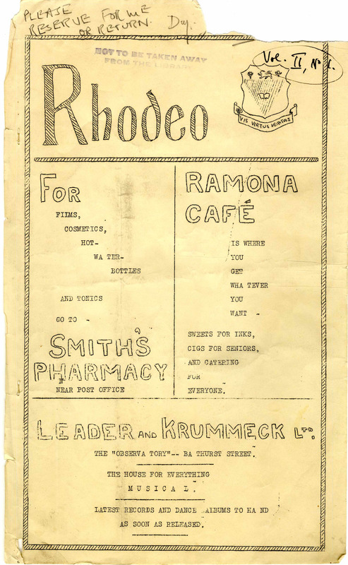 Rhodes University, Grahamstown, South Africa, “Rhodeo, Vol 2, No. 1”, Rhodes University History Archive, accessed 30 December 2025, https://digitalarchives.ru.ac.za/s/ruha/item/7634