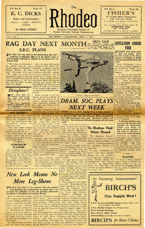 Rhodes University, Grahamstown, South Africa, “Rhodeo, Vol. 1, No. 1”, Rhodes University History Archive, accessed 30 December 2025, https://digitalarchives.ru.ac.za/s/ruha/item/7676