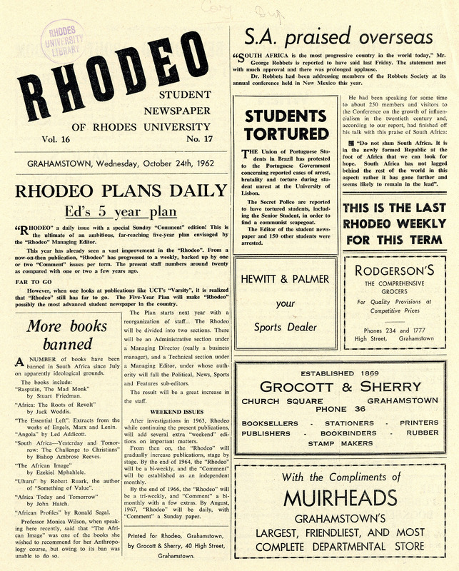 Rhodes University, Grahamstown, South Africa, “Rhodeo, Vol. 16, No. 17”, Rhodes University History Archive, accessed 30 December 2025, https://digitalarchives.ru.ac.za/s/ruha/item/7754