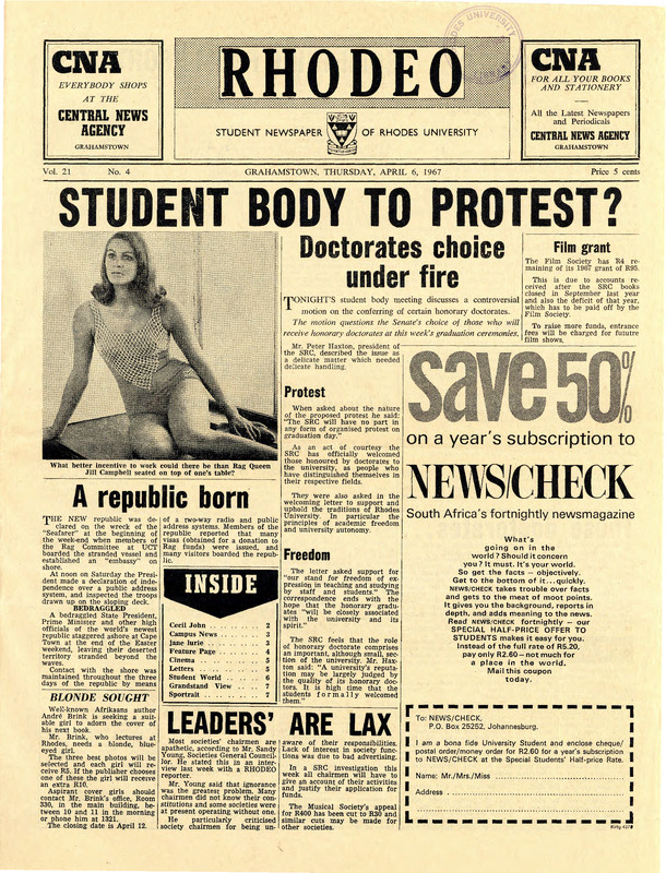Rhodes University, Grahamstown, South Africa, “Rhodeo, Vol. 21, No. 4”, Rhodes University History Archive, accessed 29 December 2025, https://digitalarchives.ru.ac.za/s/ruha/item/7918