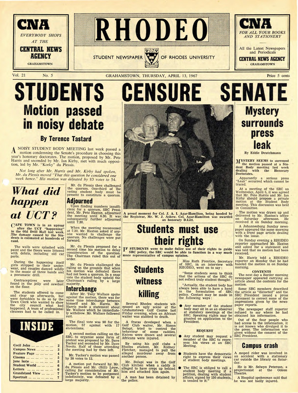 Rhodes University, Grahamstown, South Africa, “Rhodeo, Vol. 21, No. 5”, Rhodes University History Archive, accessed 29 December 2025, https://digitalarchives.ru.ac.za/s/ruha/item/7920