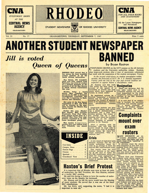 Rhodes University, Grahamstown, South Africa, “Rhodeo, Vol. 21, No. 17”, Rhodes University History Archive, accessed 29 December 2025, https://digitalarchives.ru.ac.za/s/ruha/item/7946