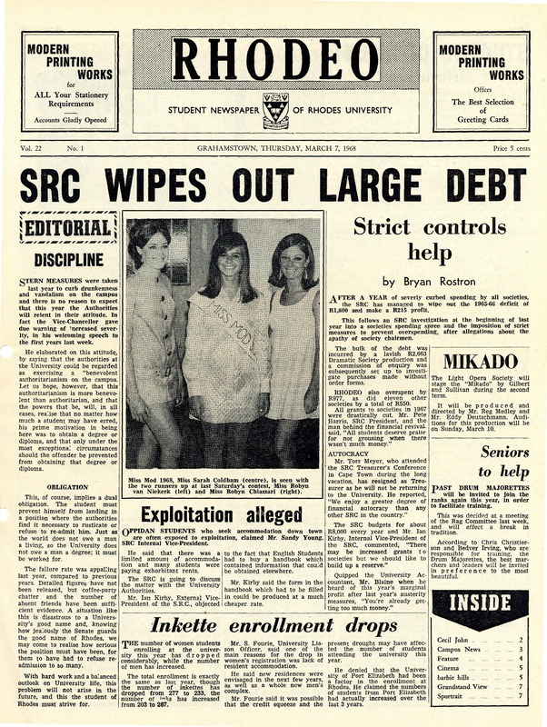 Rhodes University, Grahamstown, South Africa, “Rhodeo, Vol. 22, No. 1”, Rhodes University History Archive, accessed 29 December 2025, https://digitalarchives.ru.ac.za/s/ruha/item/7954