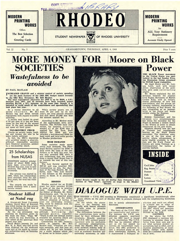 Rhodes University, Grahamstown, South Africa, “Rhodeo, Vol. 22, No. 5”, Rhodes University History Archive, accessed 29 December 2025, https://digitalarchives.ru.ac.za/s/ruha/item/7962