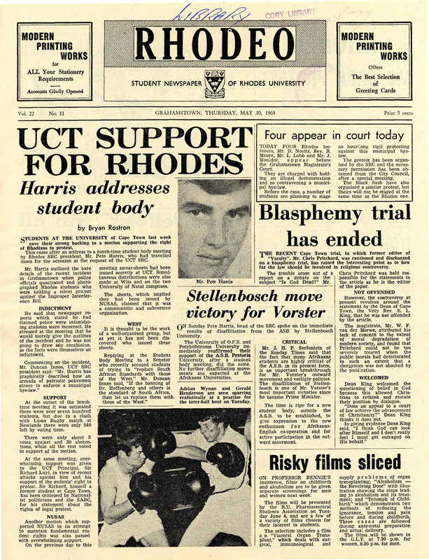 Rhodes University, Grahamstown, South Africa, “Rhodeo, Vol. 22, No. 11”, Rhodes University History Archive, accessed 29 December 2025, https://digitalarchives.ru.ac.za/s/ruha/item/7972