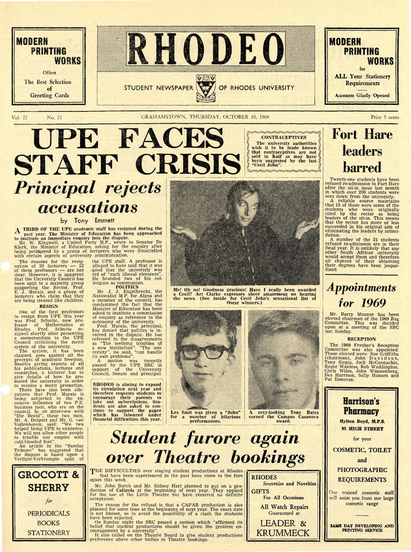 Rhodes University, Grahamstown, South Africa, “Rhodeo, Vol. 22, No. 21”, Rhodes University History Archive, accessed 29 December 2025, https://digitalarchives.ru.ac.za/s/ruha/item/7992