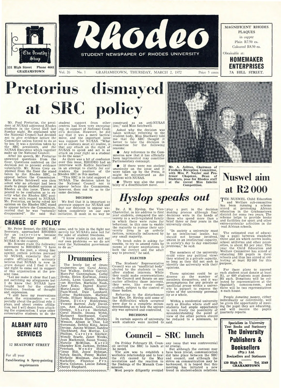 Rhodes University, Grahamstown, South Africa, “Rhodeo, Vol. 26, No. 1”, Rhodes University History Archive, accessed 29 December 2025, https://digitalarchives.ru.ac.za/s/ruha/item/8070