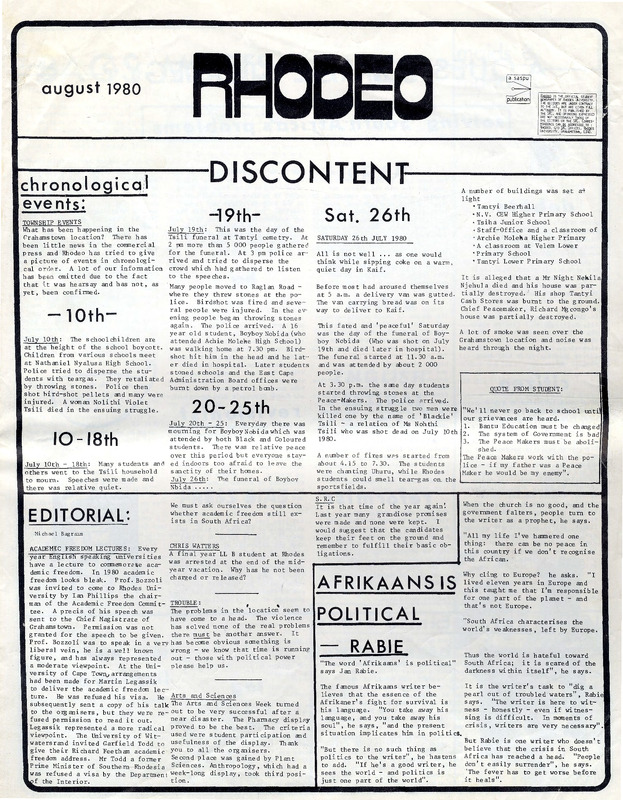 Rhodes University, Grahamstown, South Africa, “Rhodeo: 1980 - August”, Rhodes University History Archive, accessed 29 December 2025, https://digitalarchives.ru.ac.za/s/ruha/item/8108