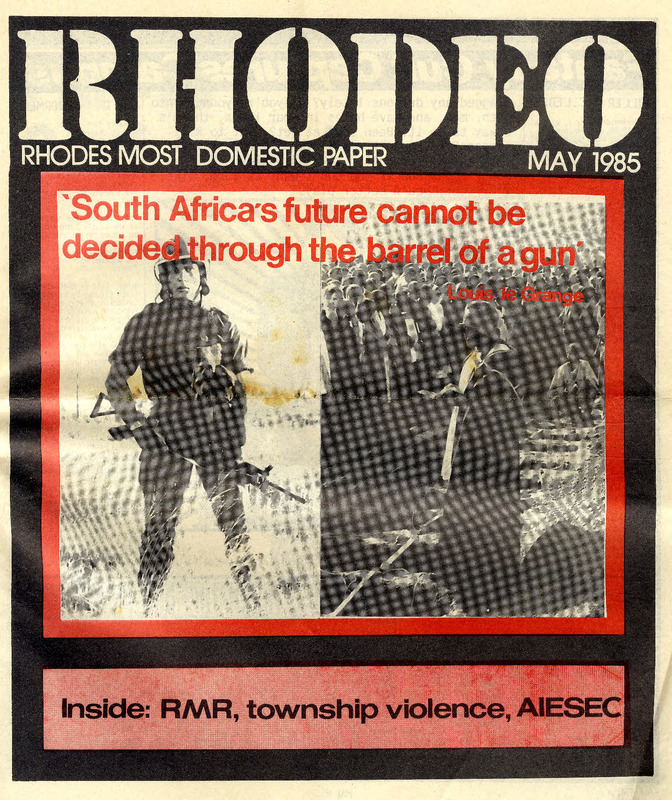 Rhodes University, Grahamstown, South Africa, “Rhodeo: 1985 - May”, Rhodes University History Archive, accessed 29 December 2025, https://digitalarchives.ru.ac.za/s/ruha/item/8168