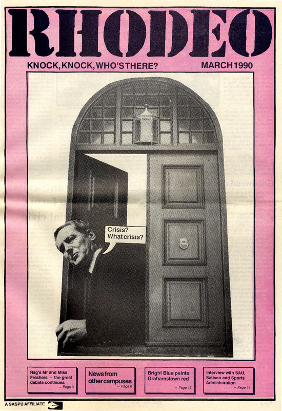 Rhodes University, Grahamstown, South Africa, “Rhodeo: 1990 - March”, Rhodes University History Archive, accessed 29 December 2025, https://digitalarchives.ru.ac.za/s/ruha/item/8210