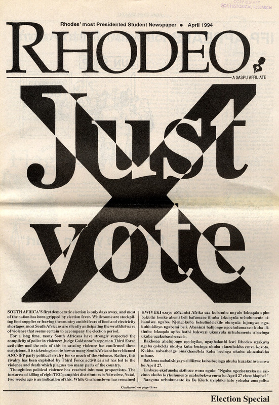 Rhodes University, Grahamstown, South Africa, “Rhodeo: 1994 - April”, Rhodes University History Archive, accessed 29 December 2025, https://digitalarchives.ru.ac.za/s/ruha/item/8264