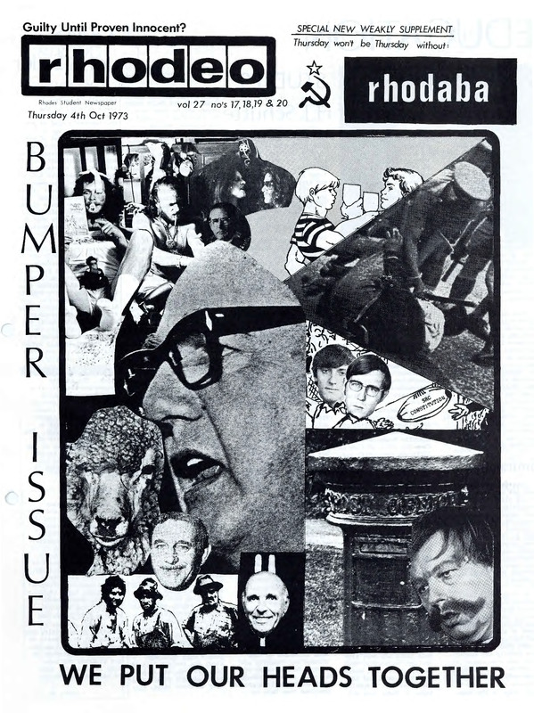 Rhodes University, Grahamstown, South Africa, “Rhodeo, Vol. 27, No. 17, 18, 19 & 20,Rhodeo: 1973 - October”, Rhodes University History Archive, accessed 29 December 2025, https://digitalarchives.ru.ac.za/s/ruha/item/8296
