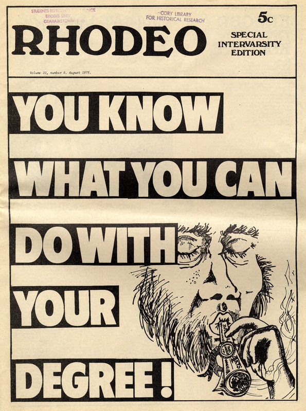 Rhodes University, Grahamstown, South Africa, “Rhodeo, Vol. 30, No. 8,Rhodeo: 1976 - August”, Rhodes University History Archive, accessed 29 December 2025, https://digitalarchives.ru.ac.za/s/ruha/item/8334