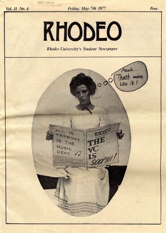 Rhodes University, Grahamstown, South Africa, “Rhodeo, Vol. 31, No. 4,Rhodeo: 1977 - May”, Rhodes University History Archive, accessed 29 December 2025, https://digitalarchives.ru.ac.za/s/ruha/item/8342