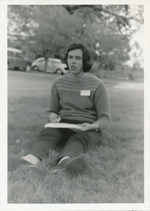 Tessa van de Walt sketching at the University Christian Movement camp, 1968