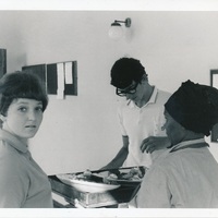 - Unknown young man and woman being served food by Rhodes catering staff