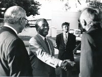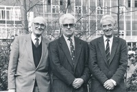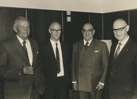 Group photograph : group portrait of the four longest serving members of the Rhodes University Council : December 1974. Names listed are, left to right, J.P. Hartman, Ken Dimbleby, J.D. Cloete and Louis Dubb. Photographer unknown.